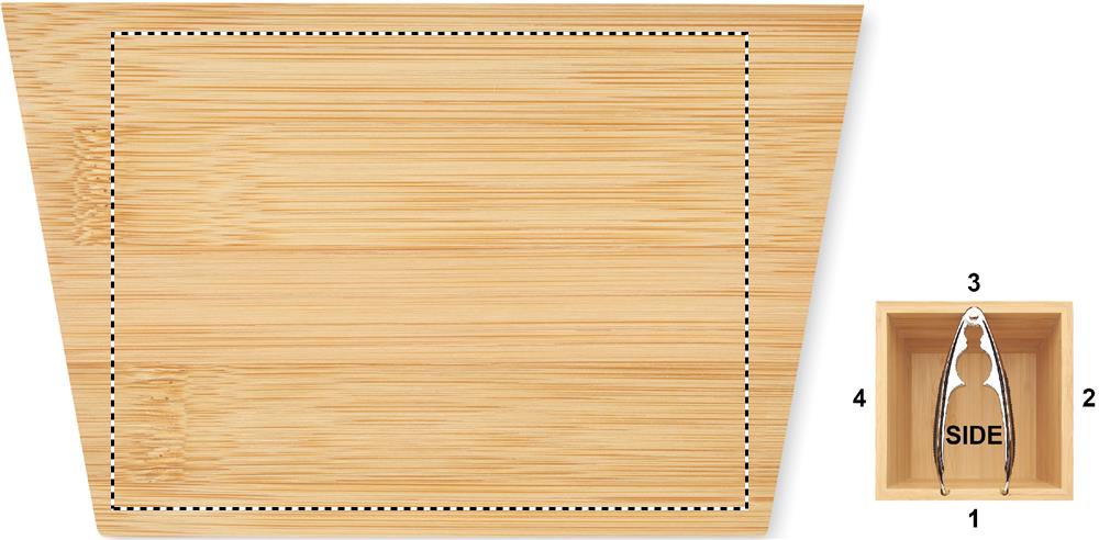 Pähklipurunemise komplekt bambusest kausi ja hõbedase tsingisulamist TPR-käepidemega pähklipurustajaga. Bambus on looduslik toode, ühe eseme värvis ja suuruses võib esineda väikesi erinevusi, mis võivad mõjutada lõppviimistlust.