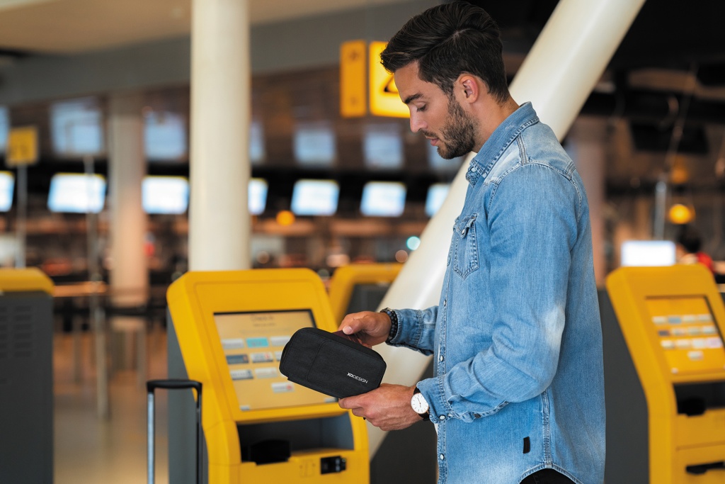XD Designi passihoidja hoiab teie väärisesemed käepärast ja kaitstuna. RFID-kaitstud tasku ja pardakaardid magnetsulguriga esitaskus on käeulatuses. Selle passiümbrise eripära on see, et saate seda hoidikut kasutada ka telefonialusena, et reisil olles oma lemmikvideoid vaadata. Kolm-ühes sisemine hoiuruum võimaldab seda kasutada ka raha- ja telefonikotina. Sobib kuni 5,5” mobiiltelefonile. Valmistatud taaskasutatud materjalidest. Registreeritud disain®