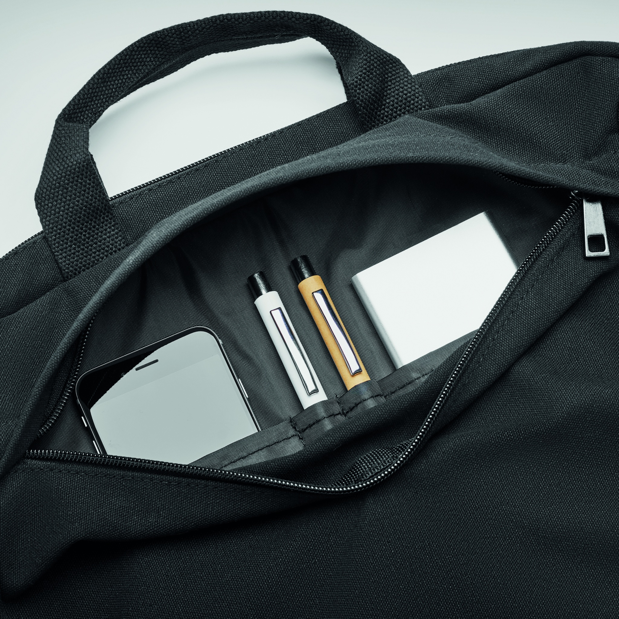 Pestud lõuendist sülearvutikott, Must