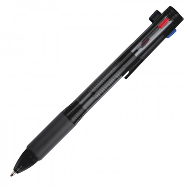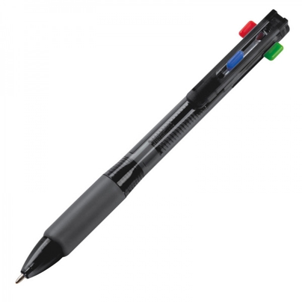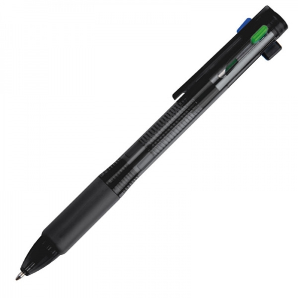 Plastikust pastapliiats 4 värvilise kirjutusmiiniga (sinine, must, punane ja roheline). Teie logo trükitakse klipi alla.