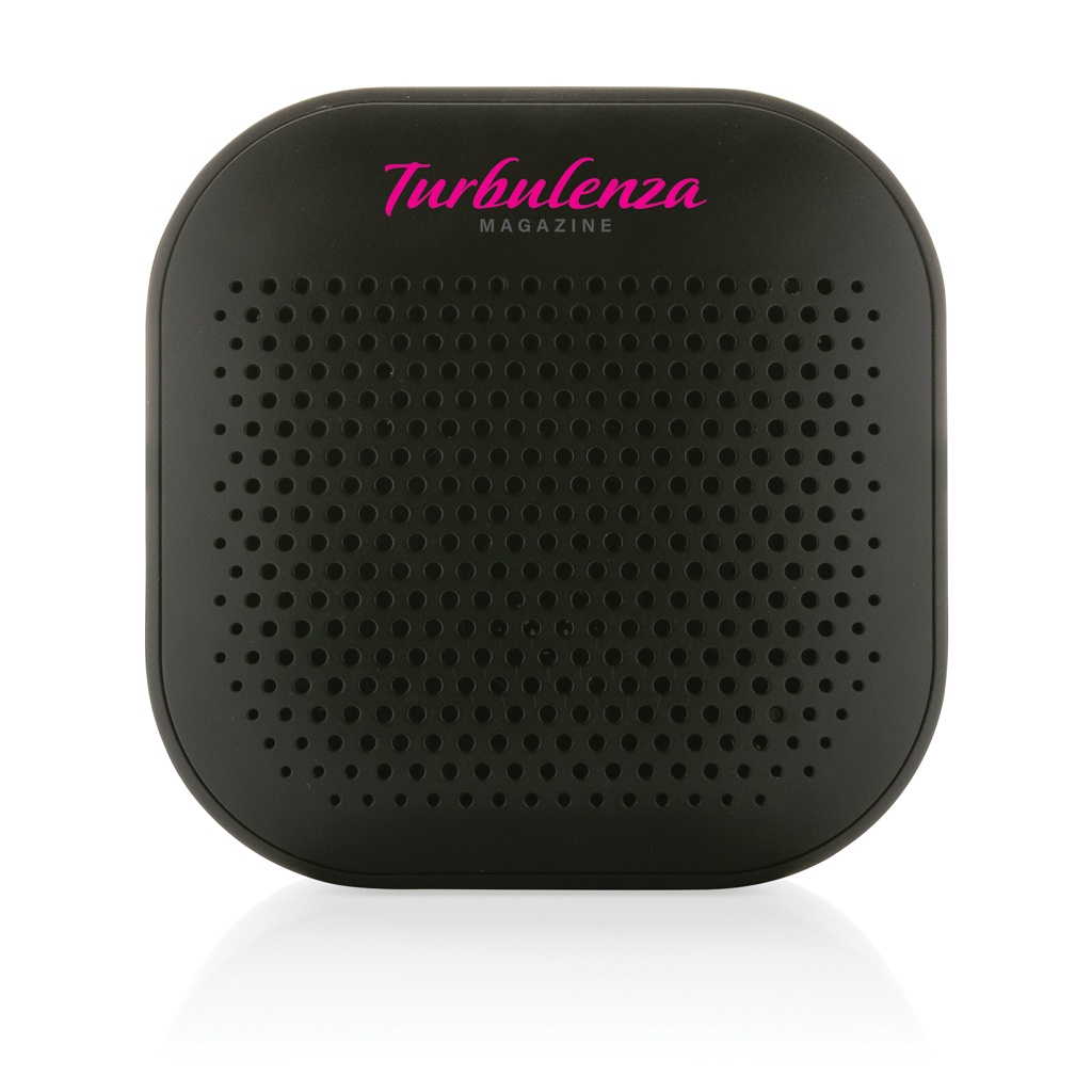 3 W juhtmevaba kõlar, mis on valmistatud RCS (Recycled Claim Standard) sertifitseeritud taaskasutatud ABS-ist. Taaskasutatud kogusisaldus: 41% eseme kogukaalust. RCS-sertifikaat tagab taaskasutatud materjalide täielikult sertifitseeritud tarneahela. Kõlar on varustatud 400 mAh akuga, et tagada kuni 3,5 tundi esitusaega ja BT5.3 sujuvaks ühenduseks selge heliga. Ühendusulatus kuni 10 meetrit. Mikrofoniga kõnedele vastamiseks. Pakitud FSC® segukarpi. Kaasa arvatud RCS-sertifikaadiga taaskasutatud TPE laadimiskaabel. Toode ja tarvikud 100% PVC-vaba. IPX 4 veekindel.
