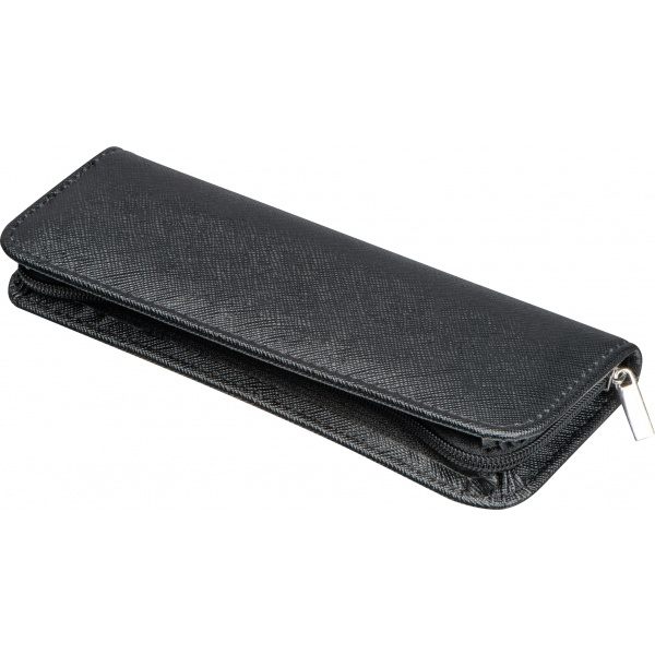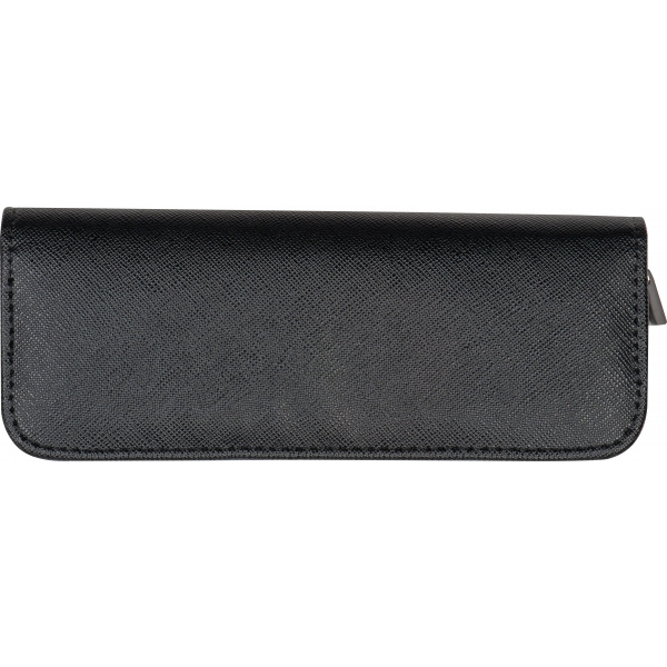 Taaskasutatud PU-st valmistatud lukuga pliiatsikohver kahele kirjutusvahendile.