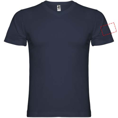 Torujas lühikeste varrukatega t-särk 2-kihilise v-kaelusega. Tugevdatud kaetud õmblused kraes ja õlgades. Eemaldatav etikett. Modell on 190 cm pikk ja kannab suurust L.
