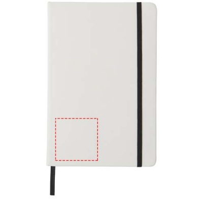 Valge A5 märkmik värvilise elastse kinnise ja paelaga. Sisaldab 80 lehte (60g/m2) joonega paberit. Kaanele võimalik digitrükk.