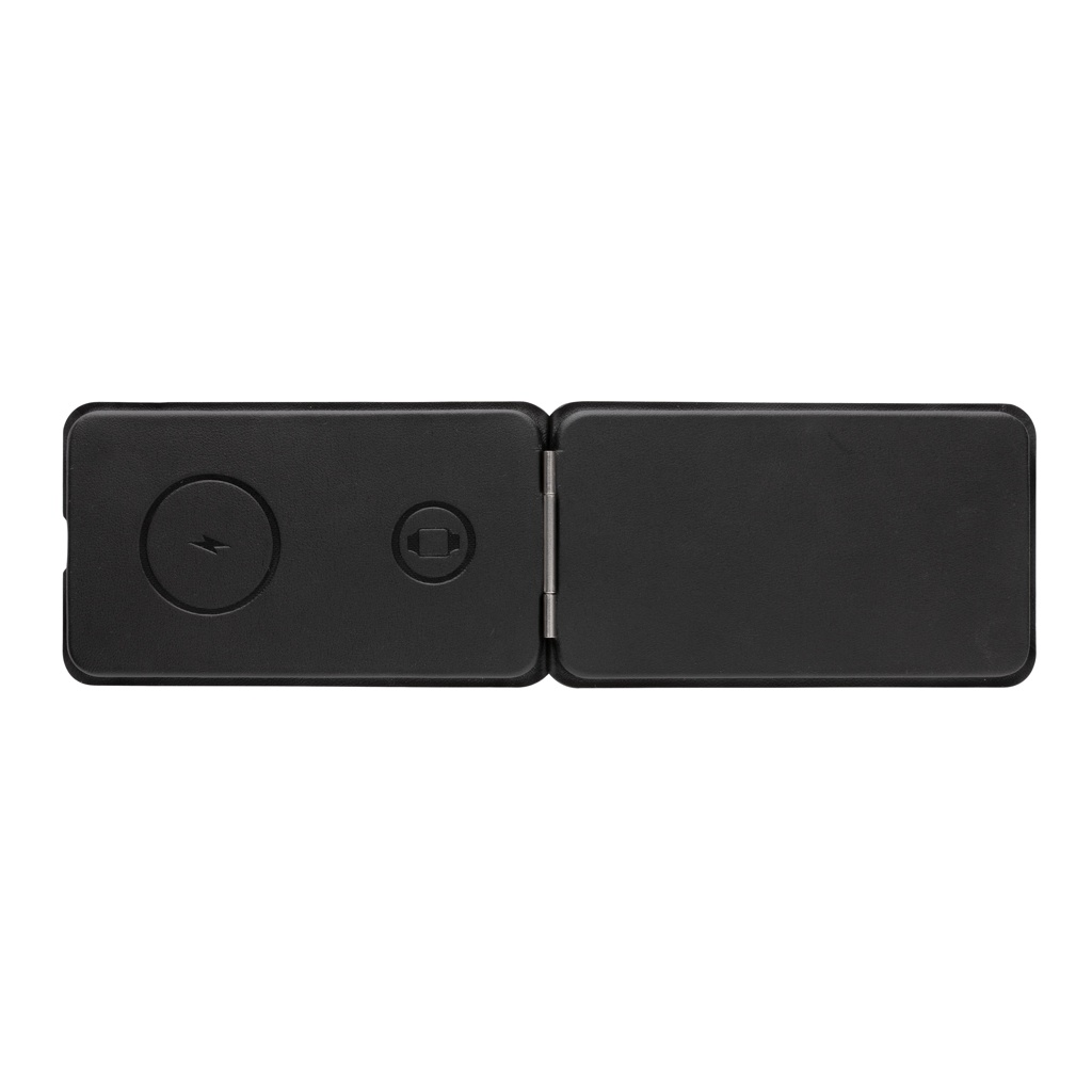 Luksuslik ja kokkupandav kolm-ühes juhtmevaba laadija, mis on valmistatud RCS-sertifikaadiga taaskasutatud PU-st. Taaskasutatud kogusisaldus: 5% eseme kogukaalust. RCS-sertifikaat tagab taaskasutatud materjalide täielikult sertifitseeritud tarneahela. Juhtmeta laadija on varustatud magnetilise 15 W juhtmevaba laadijaga ees. Tagaküljel on täiendav 5 W juhtmevaba laadija, mis sobib kõrvaklappide või muude väikeste juhtmevabade laetavate seadmete jaoks, ja 2,5 W juhtmevaba laadija nutikellade jaoks (ainult Apple'i kellad) Kaasa arvatud RCS-sertifikaadiga 120 cm taaskasutatud TPE-kaabel. Pakitud FSC® mix kraft pakendisse. Toode ja tarvikud 100% PVC-vaba. Sisend: 9V/3A optimaalseks kasutamiseks. Väljund: Ees: 9V/1.1A; 9V/1,67 A/(15W), kõrvaklapid: 5V/1A (5W), käekell: 5V/0,5A.