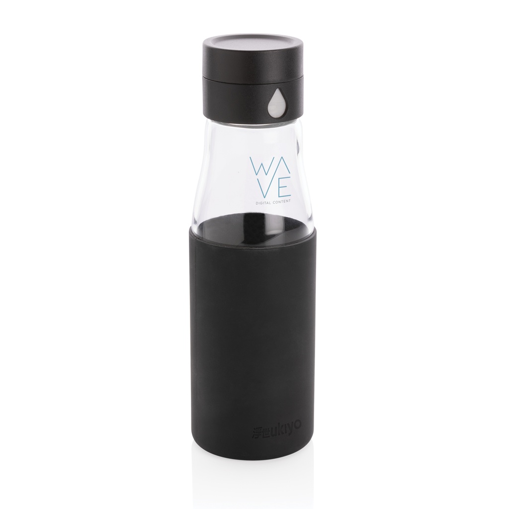 Logotrade meene foto: Ukiyo klaasist hüdratatsiooni jälgiv varrukaga pudel
