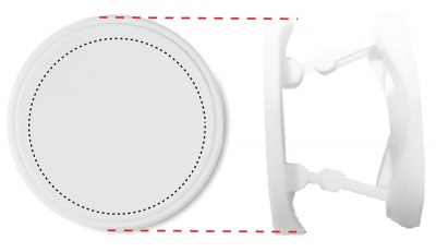 Ümmargune kokkupandav ABS-ist telefonitarvik, millel on kaks funktsiooni: telefonialus ja hoidik. Selle tagaküljel on 3M kleebis.