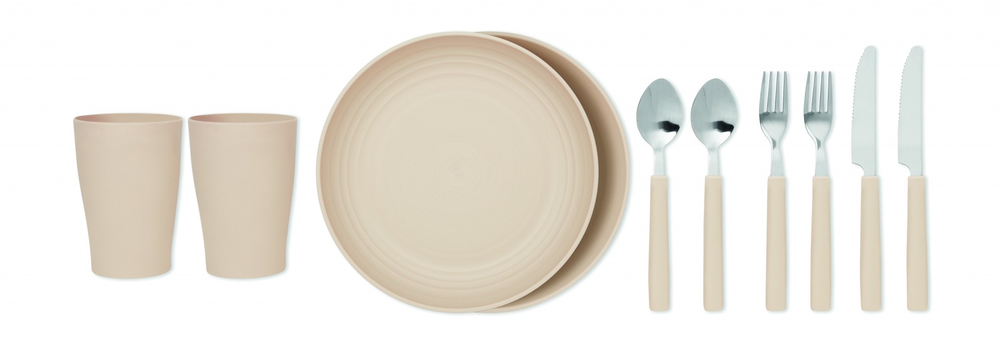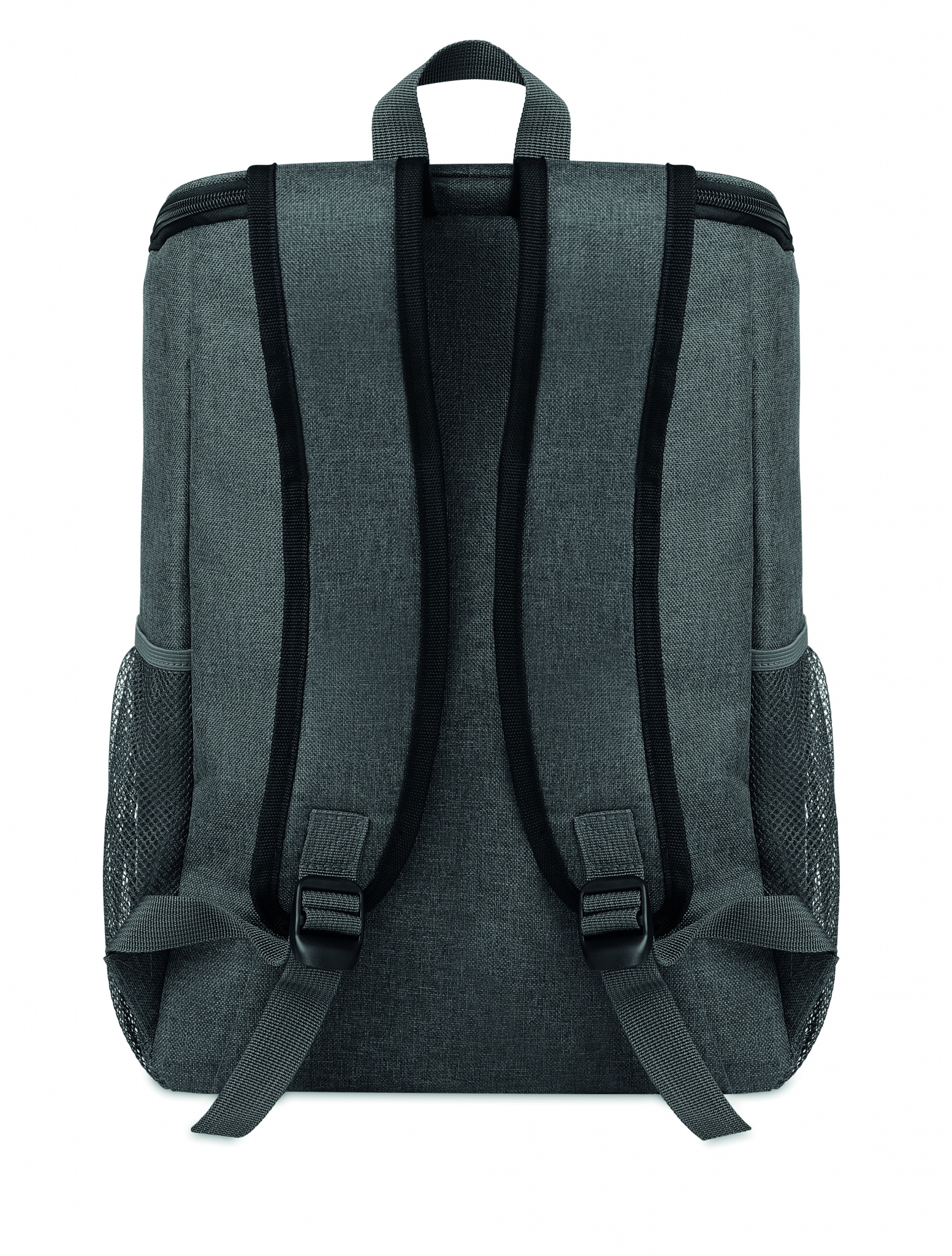 Külmekott või välipiknikuseljakott 2-toonist 600D RPET-ist koos 2 inimese lauatarvikutega. Sellel on roostevabast terasest nuga ning PP-kahvel, lusikas ja tass.