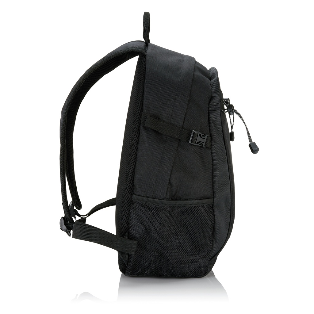600D ja 1680D polüestrist väliseljakott ühe suure põhisahtliga. Mugav polsterdatud tagapaneel. Külgmised võrktaskud mahutavad veepudeli või lisavarustuse. PVC vaba.