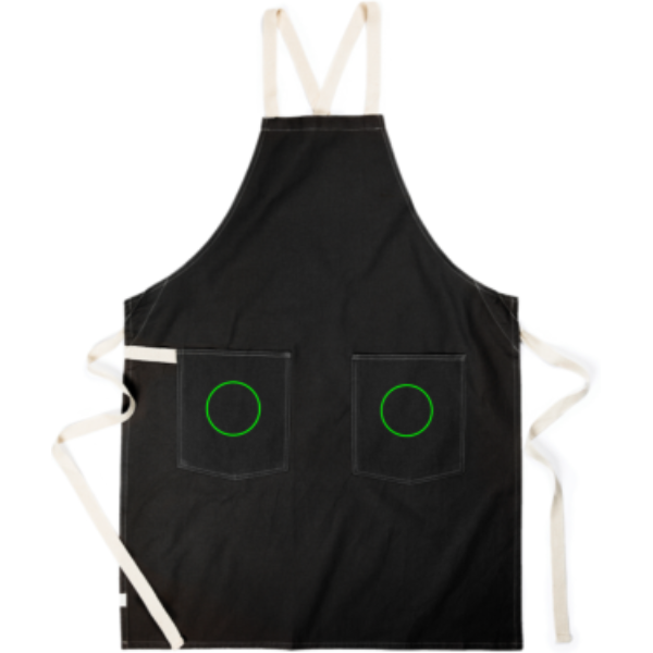 Põll, mis on valmistatud tarnijate puuvillajäätmetest 70% sertifitseeritud taaskasutatud puuvillast. Tavaliselt kasutuskõlbmatuks peetavad kiud on sobiva tootmisprotsessiga saavutanud soovitud omadused. See põll on eriti lai, et pakkuda maksimaalset kaitset. Kaks suurt esitaskut ja aas riistade või käterätiku riputamiseks.