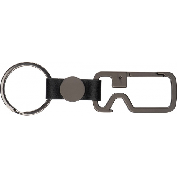 Grafiidivärvi võtmehoidja karabiiniga, võtmehoidja ja pudeliavaja. Ümarale tükile graveeritakse teie logo.