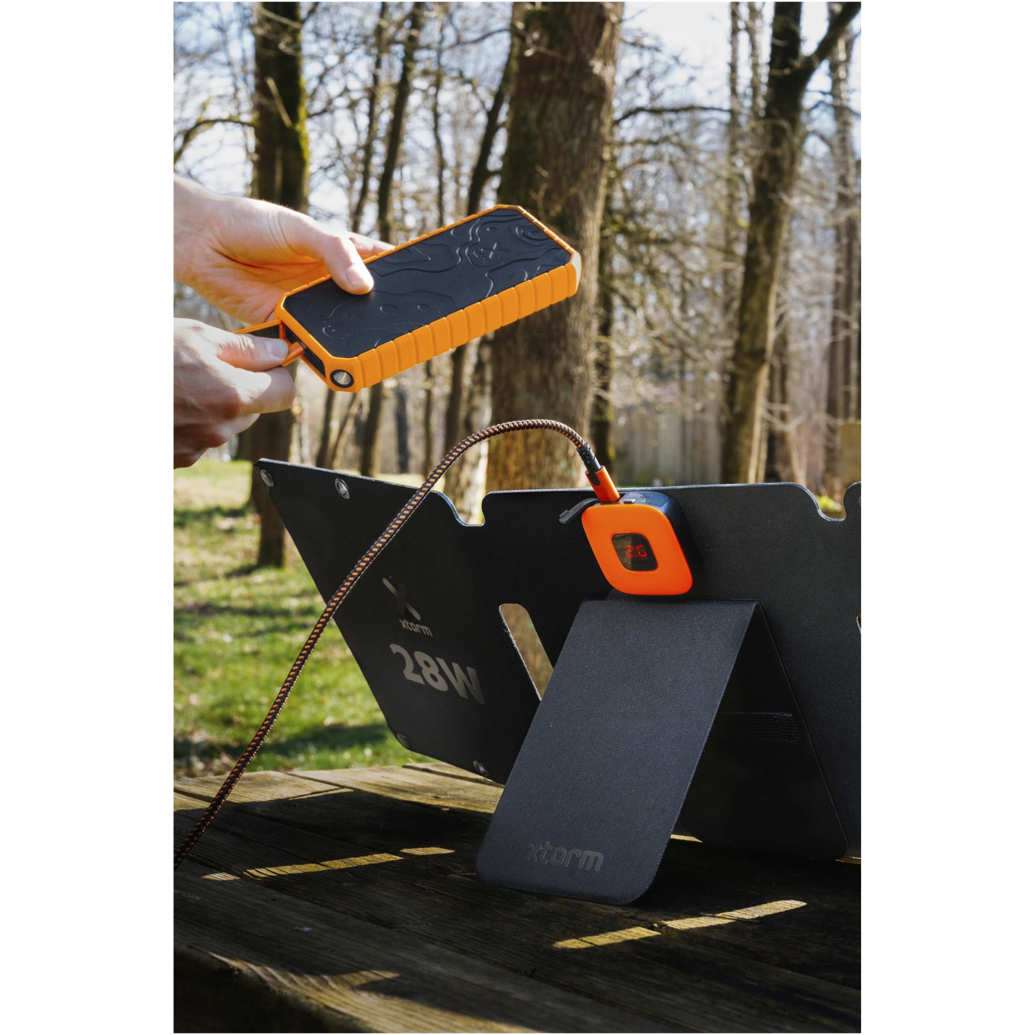 Xtorm 28W kokkupandava SolarBoosteriga saad hõlpsasti ühendada nutitelefoni, tahvelarvuti või toitepanga päikesepaneeliga USB-A või USB-C ühenduse kaudu. Olgu see telkimisreisil, veepiiril päevil või festivalil, SolarBoosters annab teie mobiilseadmetele uut energiat, mida toidab päike.