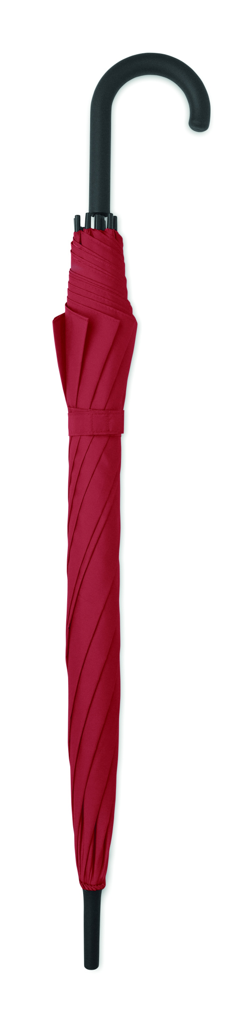 23 tuuman suora, automaattisesti avautuva sateenvarjo, jossa on mustaksi pinnoitettu metallirunko, lasikuituiset ruoteet ja paneelit 190T pongee-kankaasta. Muoviset kärjet ja yläosa. Kumipäällysteinen PP-muovista valmistettu kaareva kahva. Manuaalinen sulkeminen.