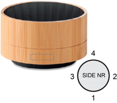 ABS 4.2 langaton kaiutin bambu kuorella, sisältää ladattavan litium 450 mAh akun, mikro USB- kaapelin ja valon kaiuttimen pohjassa. Lähtövirta 3W, 4 Ohm ja 5V, arvioitu toistoaika 3 tuntia. Luonnollisen materiaalin (bambu) vuoksi, tuotteiden värissä/ koossa saattaa olla erinäisyyksiä ja tämä voi vaikuttaa painatuksen lopputulokseen.
