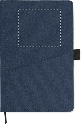 A5-muistikirja, jossa on PU-kova kansi ja puhelintasku edessä. Koteloitu. 160 viivoitettua sivua kierrätyspaperista (80 arkkia). Yhteensopiva kirjanmerkkinauha.