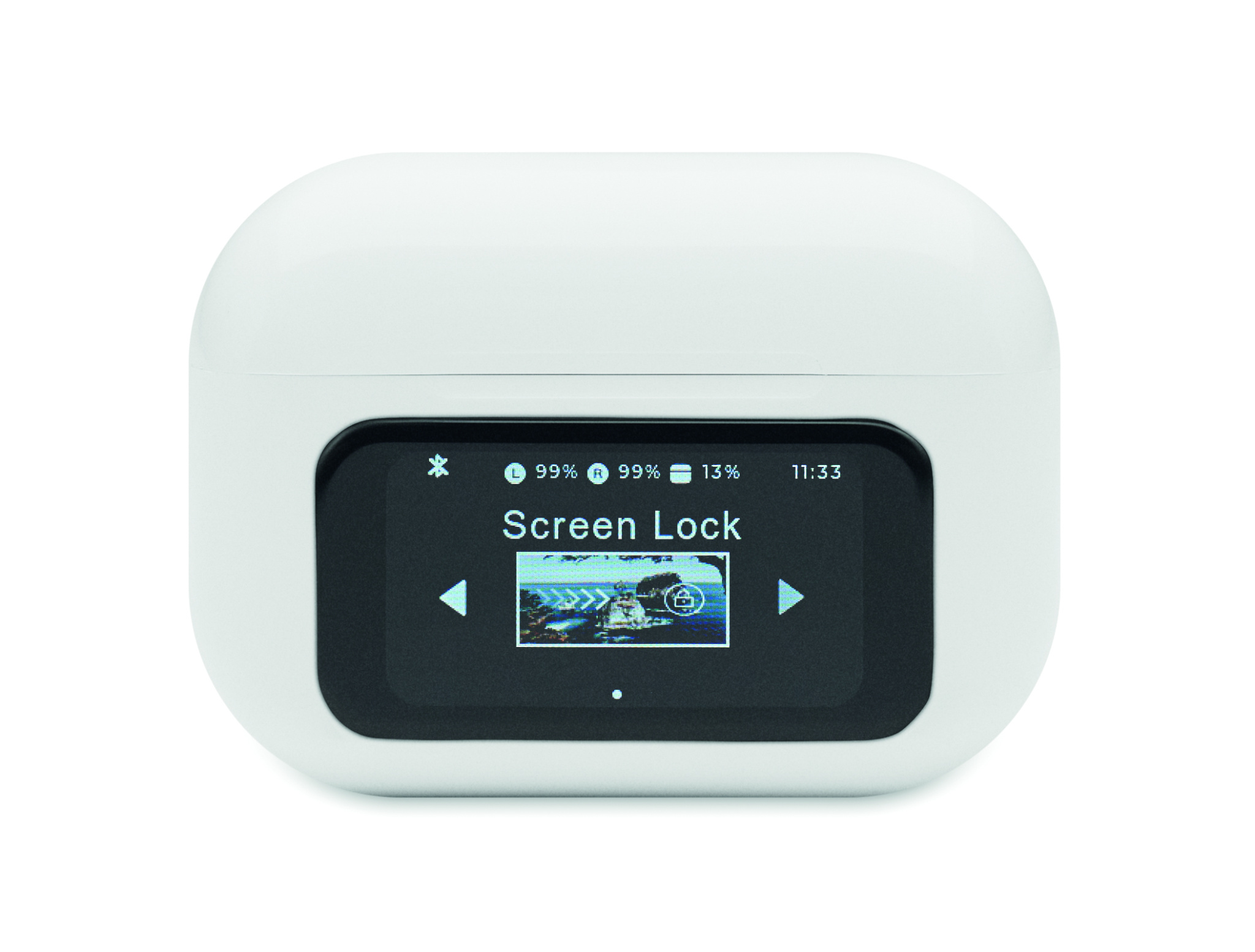 Kierrätetystä ABS-muovista valmistetut langattomat True Wireless Stereo (TWS) 5.0 -stereonappikuulokkeet (30 mAh), joissa ANC/ENC ja mikrofoni sekä 230 mAh:n latausalusta. Kosketusnäyttö.