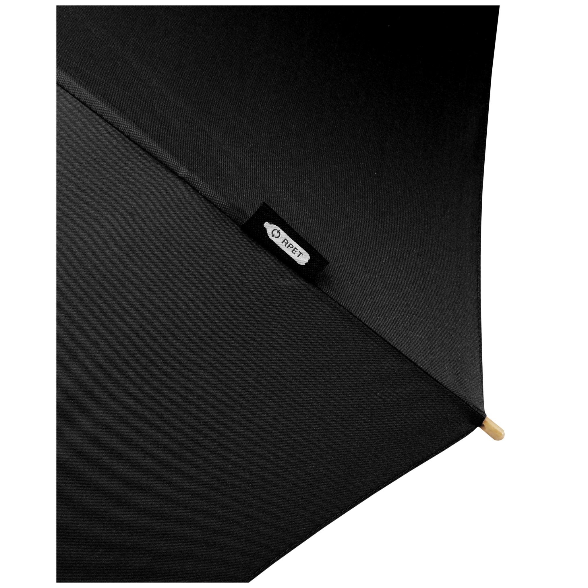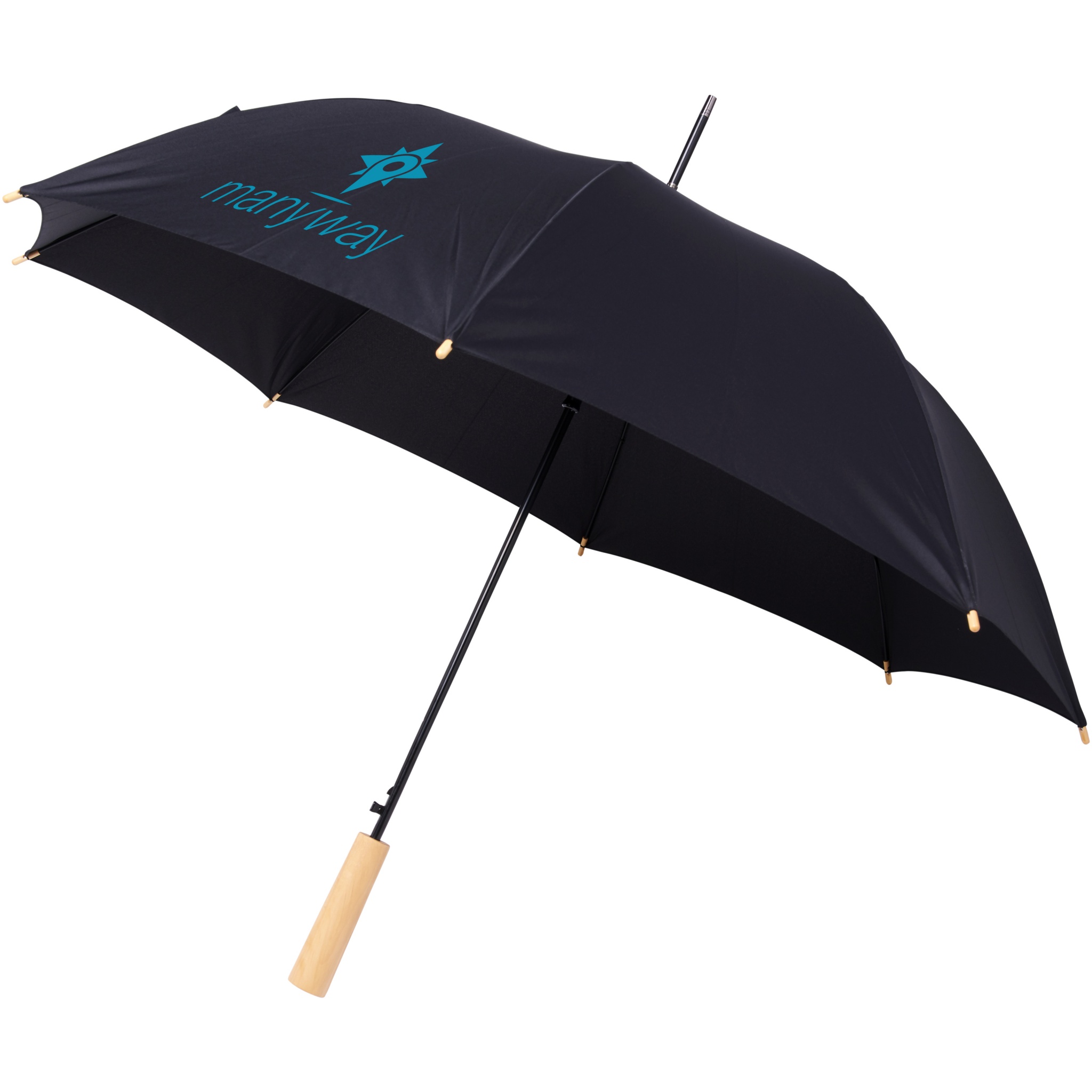 Automaattisesti avautuva sateenvarjo, jonka pongee-polyesterikupu on valmistettu PET-kierrätysmuovista. Tukeva metallivarsi ja laadukas runko lasikuituruoteilla toimivat joustavasti tuulessa. Puinen kahva, kärjet ja PET-kierrätysmuovista valmistettu pongee-polyesterikupu tekevät tästä ympäristöystävällisen vaihtoehdon. Saatavana laaja valikoima nykyaikaisia värejä. Jokaisessa paneelissa on suuri koristealue.