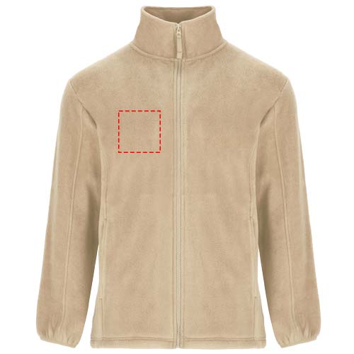 Fleece-takki korkealla vuoratulla kauluksella ja saman sävyisellä vahvistetulla saumalla. Vetoketju kankaisella vetimellä. Sivutaskut. Hihansuissa joustava reuna. Helman sivuissa säätimet sisäpuolella. Irrotettava tuotemerkki. Kuvan malli on 185 cm pitkä ja hänellä on päällään koko M