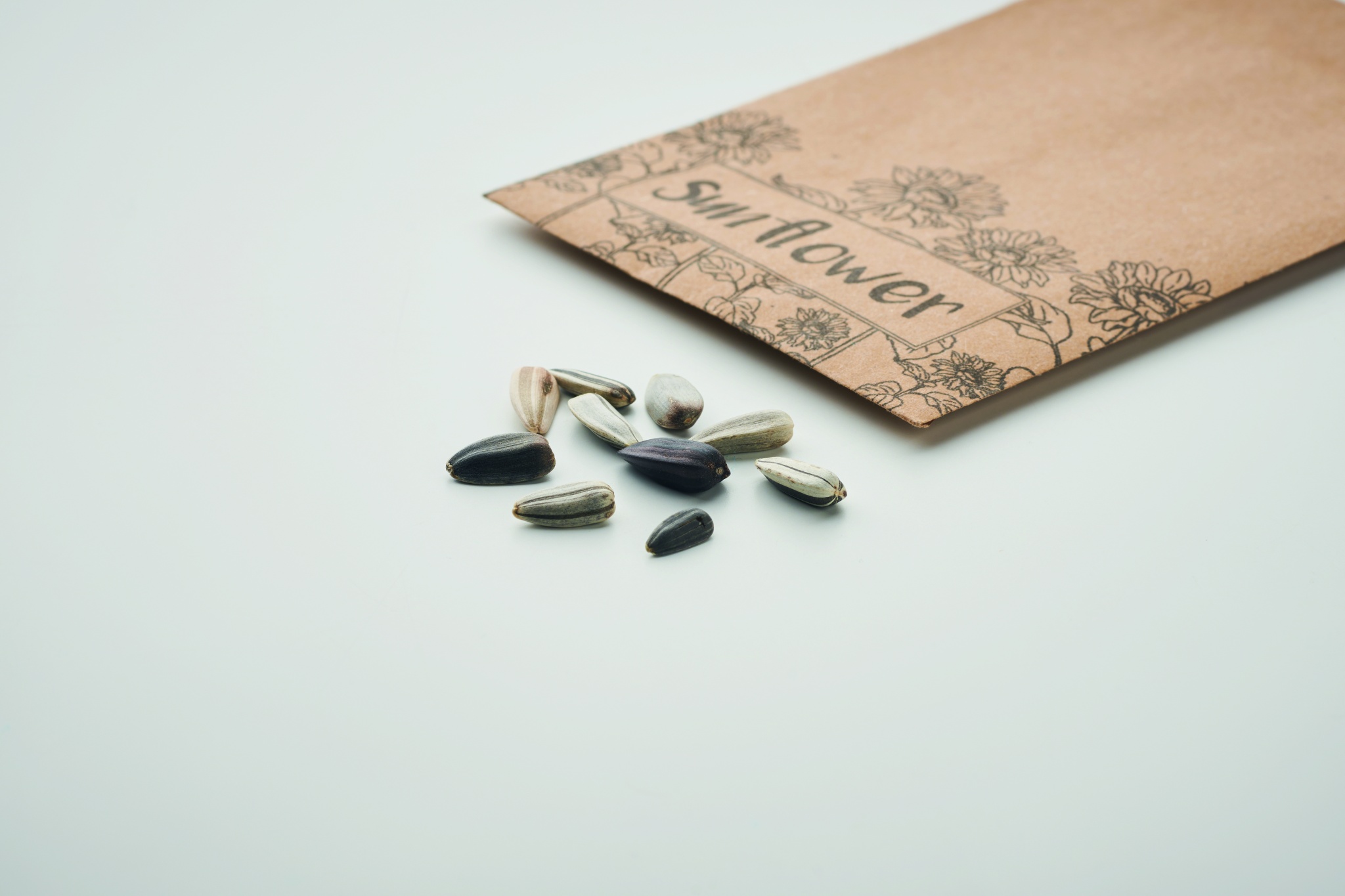 Auringonkukansiemeniä voimapaperikuoressa.