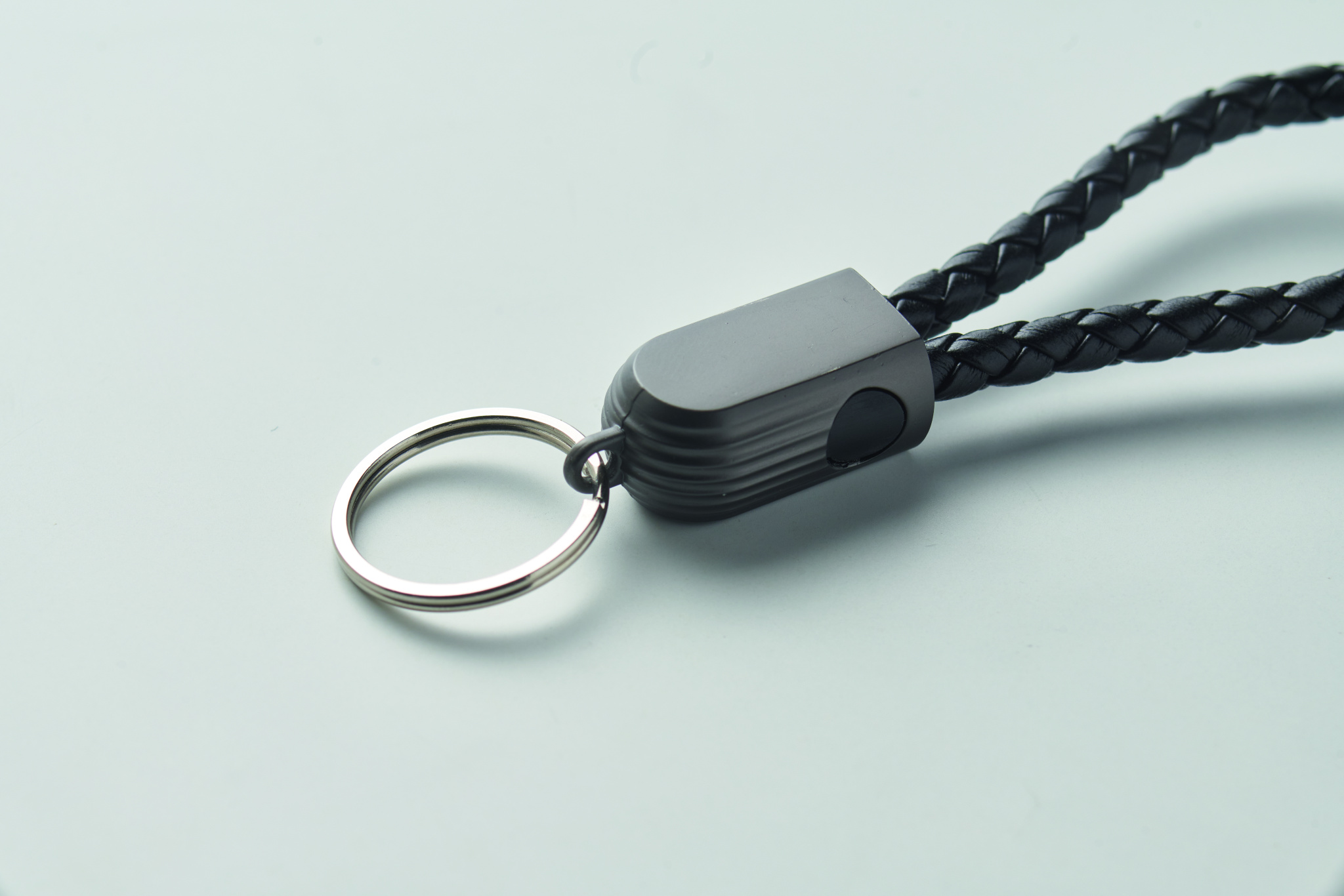 Avaimenperälenkki lataus- ja tiedonsiirtokaapelilla, 60 W:n C-tyypin ja C-tyypin välinen urosliitin PU-muovista, sinkkiseoksesta punottu yksityiskohta.