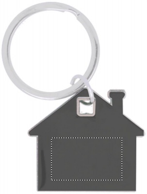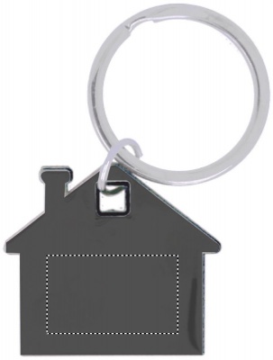 Ruostumattomast teräksestä valmistettu talon muotoinen avaimenperä, talon reunat ABS- muovista.