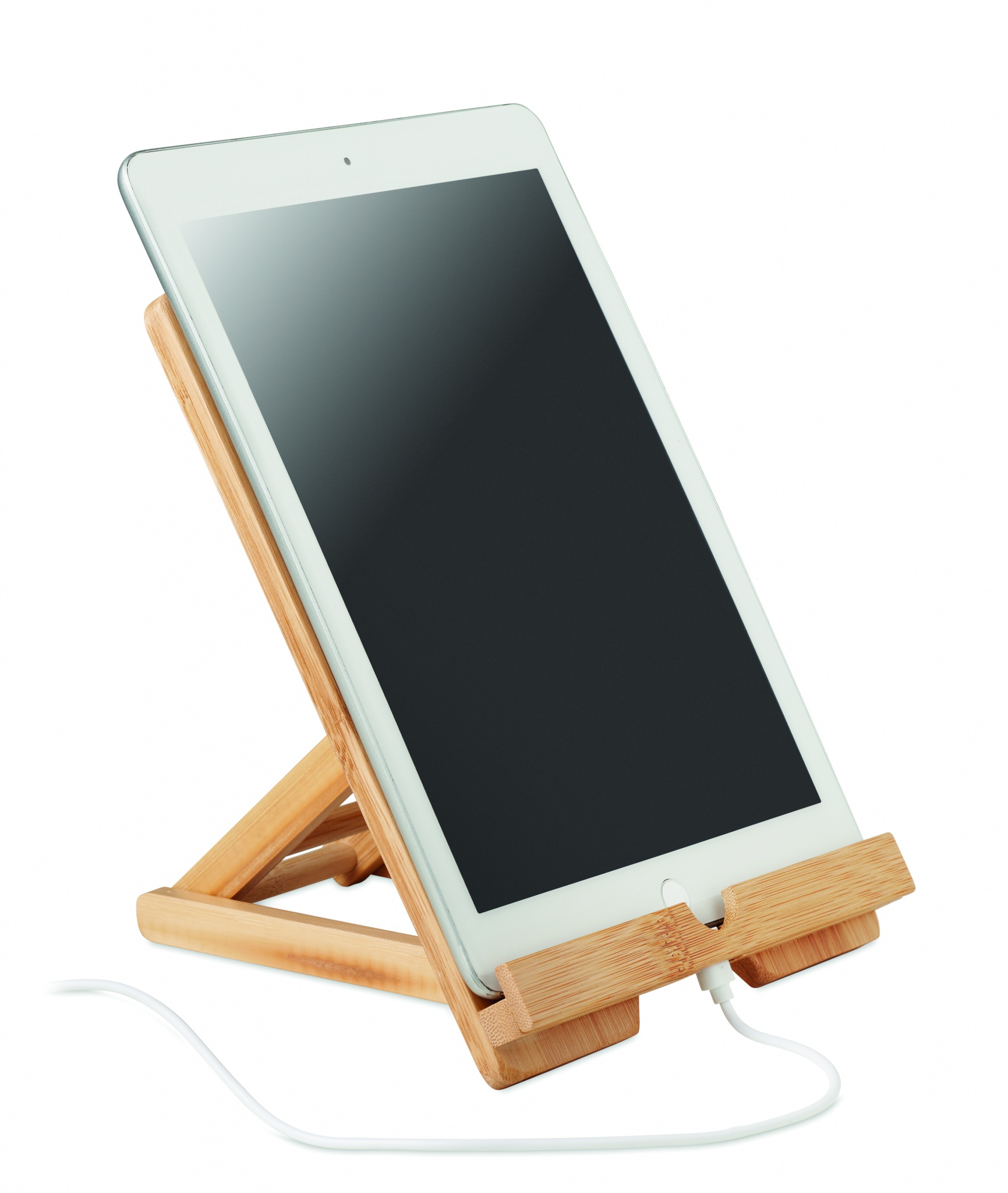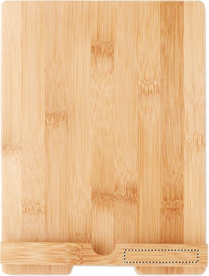 Bambusta valmistettu puhelin-/ tablettialusta. Luonnollisen materiaalin (bambu) vuoksi, tuotteiden värissä/ koossa saattaa olla erinäisyyksiä ja tämä voi vaikuttaa painatuksen lopputulokseen.