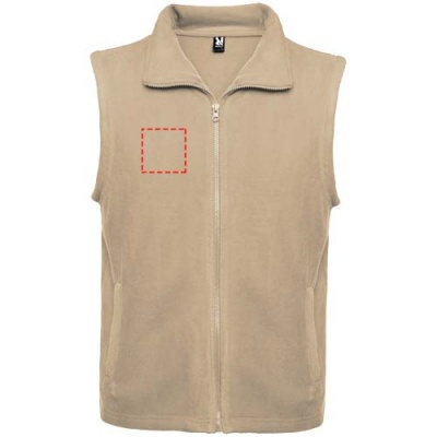 Fleece-liivi korkealla kauluksella ja saman sävyisellä vetoketjulla. Sivutaskut saman sävyisillä vetoketjuilla. Irrotettava tuotemerkki. Kuvan malli on 185 cm pitkä ja hänellä on päällään koko M.