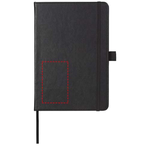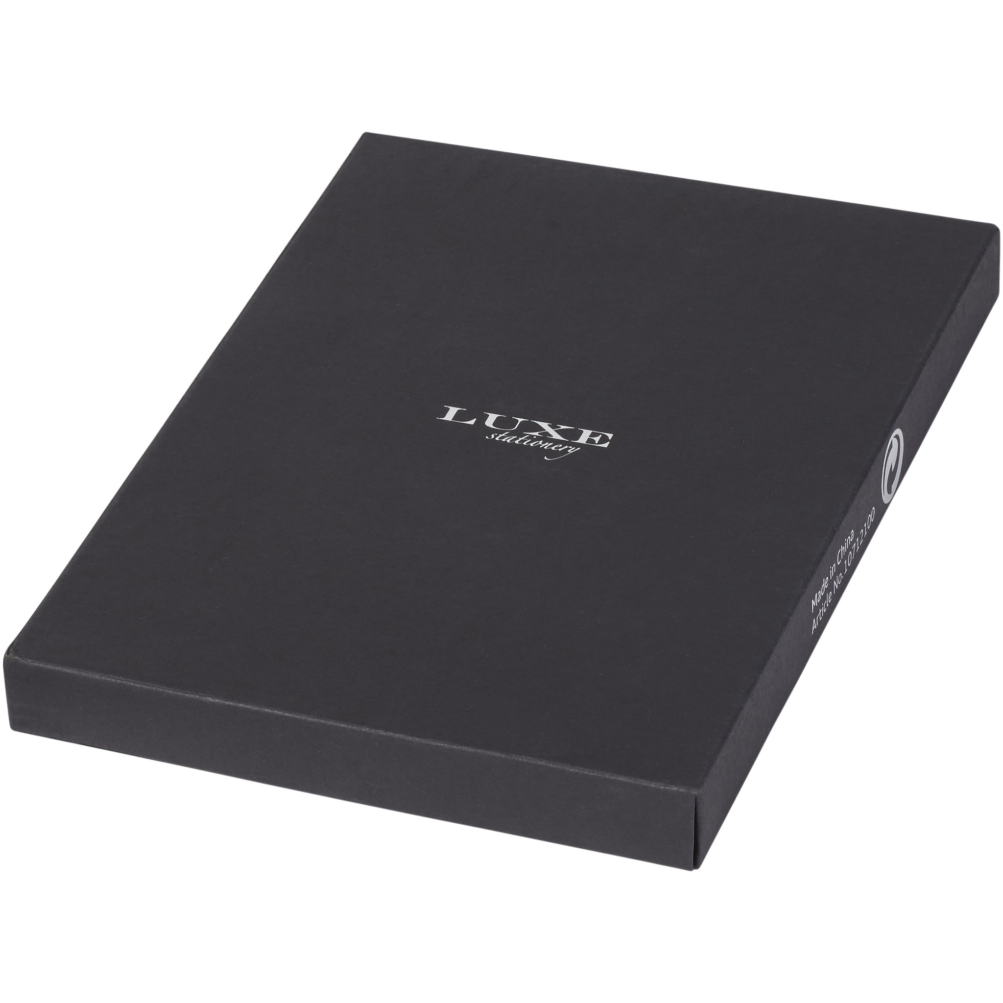 Tyylikäs muistikirja (A5-koko) jossa on 80gsm, 80 arkkia kermanväristä viivallista paperia sisäosan mustalla taskulla ja kynäsilmukalla. Pakattu ''LUXE''-lahjapakkaukseen.
