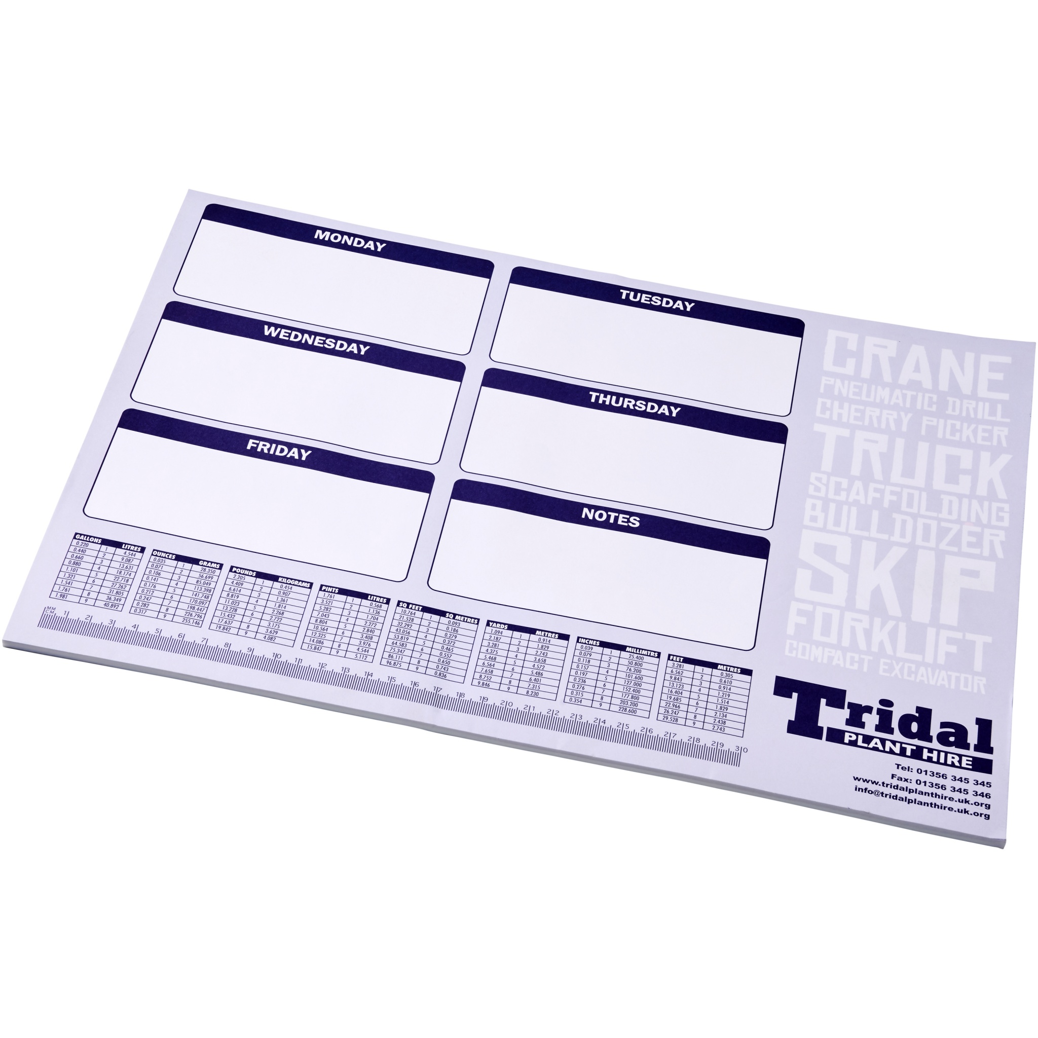 Valkoinen A2 Desk-Mate®-muistio. Sisältää 50 kpl tyhjiä paperiarkkeja, 80 g/m2. Täysivärinen painatus mahdollista kaikille arkeille. Saatavilla kaksi kokoa: 25 arkkia, 50 arkkia.