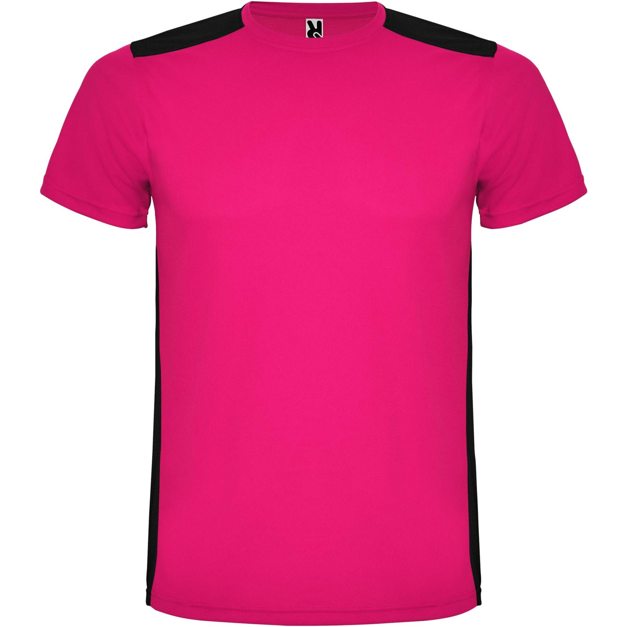 Helposti kuivuva, tekninen ja hengittävä kangas. Pyöreä kaula-aukko. Kahden polyesterikankaan yhdistelmä selässä ja olkapäissä. Bird's eye -kangas edessä ja hengittävä 3D-verkkokangas takana. Kangas, joka on suunniteltu imemään kosteutta. Sivuilla ja olkapäillä koristeellinen siksak-tikki. Selkäosa hieman pidempi. Irrotettava etiketti.