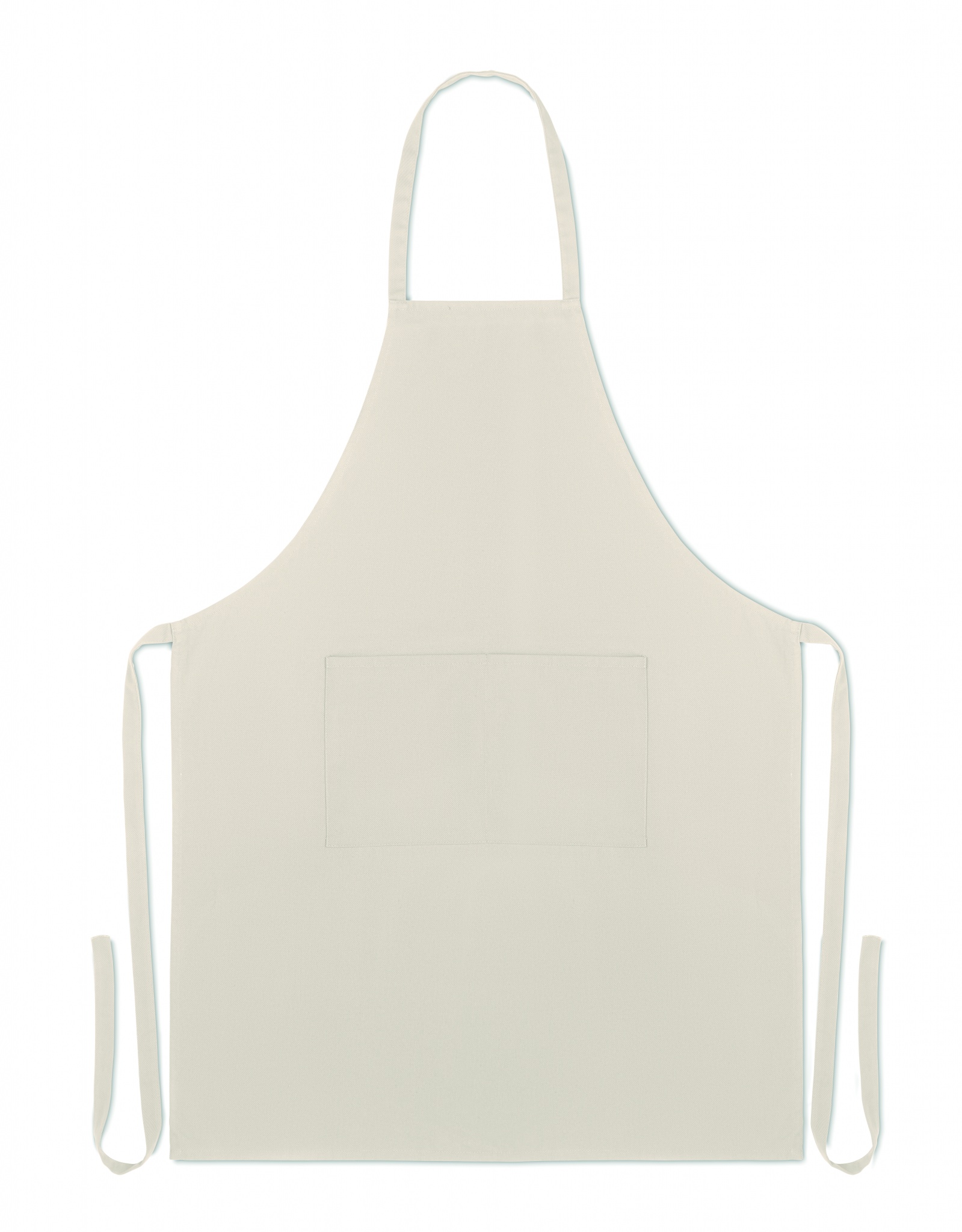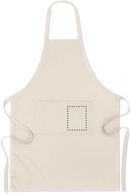 200 gr/m² orgaanisesta puuvillasta valmistettu esiliina, 2 etutaskulla.