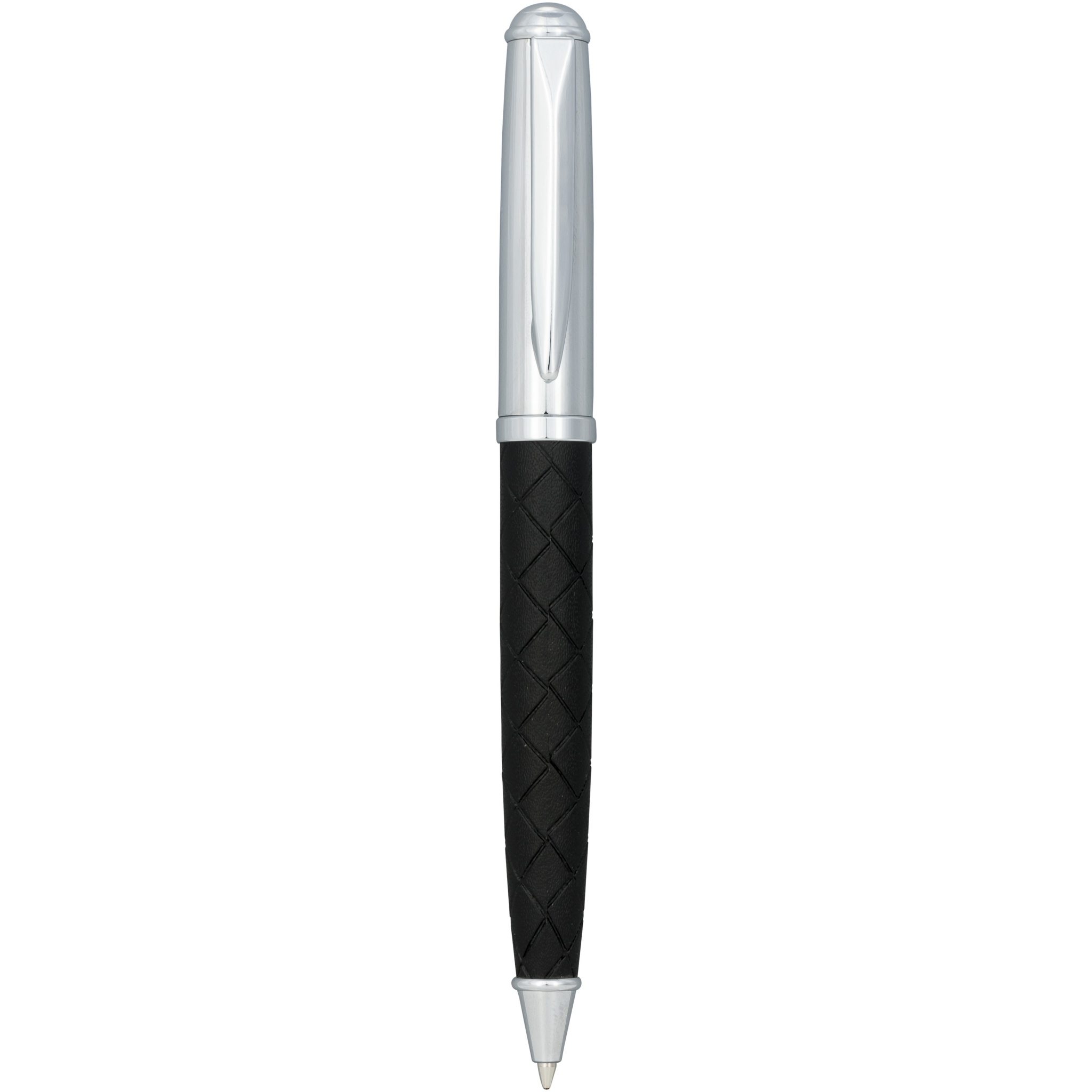 Ylellinen kuulakärkikynä nahkaviivakuviolla alaosan ympärillä. Sisältää korkealaatuisen mustan täyttöpakkauksen, pakattu ''LUXE''-lahjapakkaukseen (16x4.5x2.5cm).
