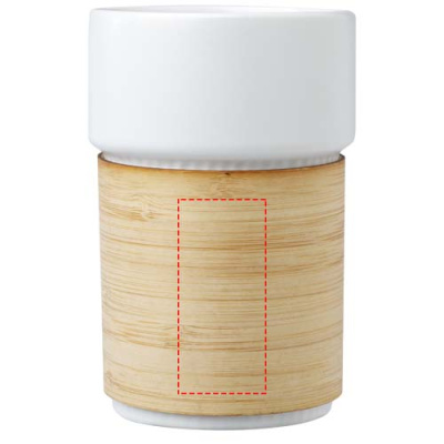 Tyylikkäässä Fika keraamisessa kahvimukissa on irrotettava bambureunus, joka helpottaa kuumien juomien nauttimista. Bambu on peräisin luontoystävällisistä, yhteiskunnallisesti ja ympäristön kannalta vastuullisista lähteistä. Tilavuus: 340 ml. Toimitetaan kierrätetystä kartongista valmistetussa lahjapakkauksessa.