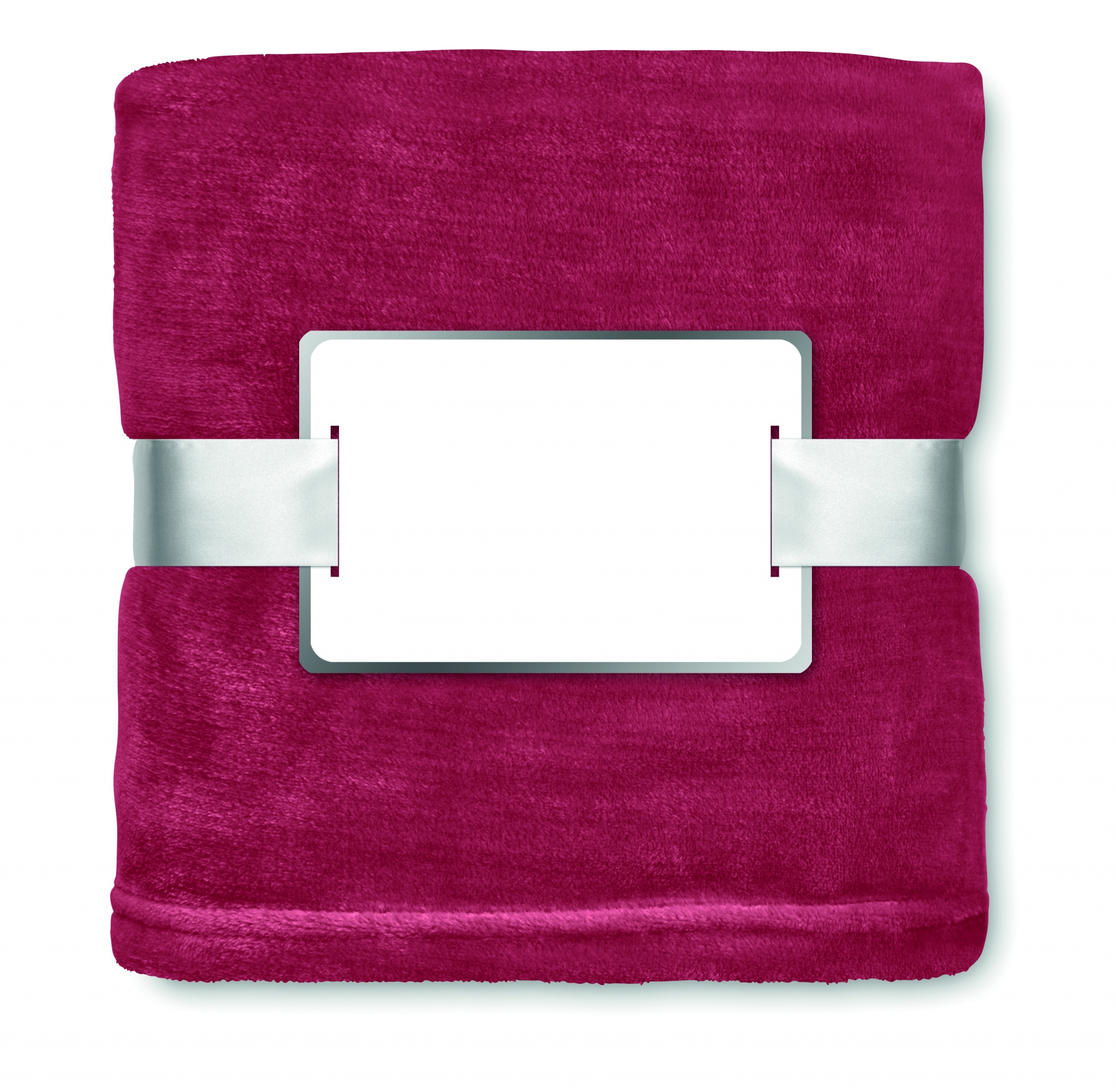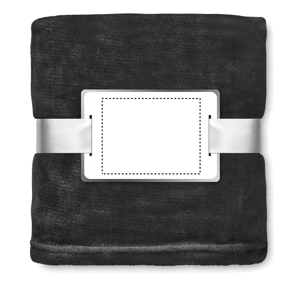 280 g/m² Flanelli-fleece viltti pakattu nauhaan, nauhan päällä painettava kortti.