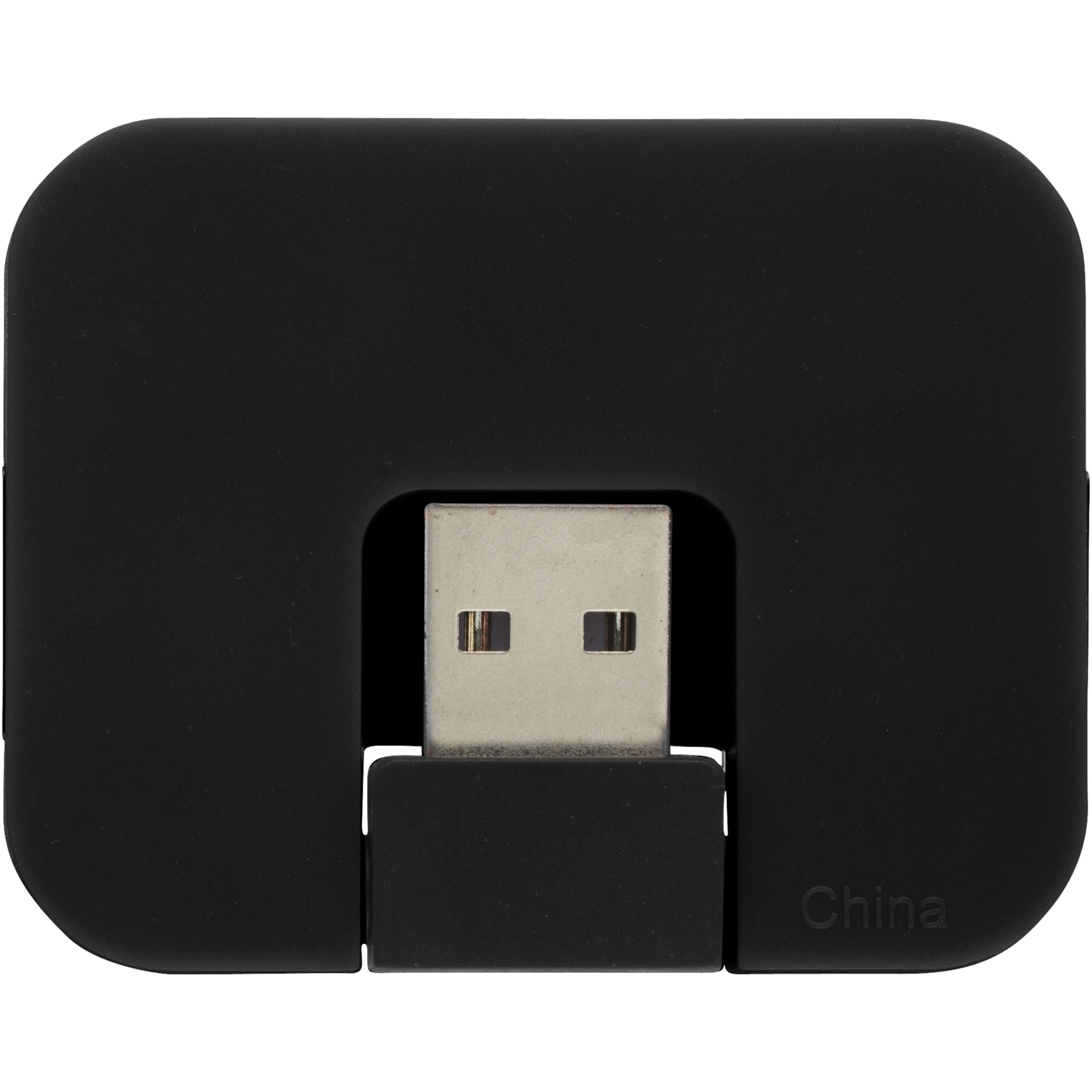 Suorakulmainen USB-hub, 4 porttia. Taitettava sisääntuloportti.