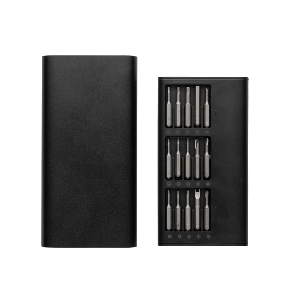 Äärimmäinen korkean suorituskyvyn kärkisarja, johon sisältyy välttämättömiä tarvikkeita matkapuhelimien, tablettien, tietokoneiden ja muiden esineiden korjaamiseen. Useimpien elektroniikkatuotteiden käyttöikää voidaan pidentää helposti yksinkertaisilla korjauksilla, joiden ohjeet löytyvät verkosta. 31 osaa pakattuna ylelliseen alumiinikoteloon. Settiin kuuluu ruuvimeisselin kahvan. T5H, T6H, T8H, T10H, T15H, SL1.5, SL2.0, SL3.0, SL4.0, PH000, PH00, PH0, PH1, PH2, H1.5, H2.0, H3.0, H4.0, T2, T3, T4, Y0.6, Y1, Y2.5, P2, P5, P6, U2.6, △2.3, medium plate 2.5. Pakattu ylelliseen lahjalaatikkoon.