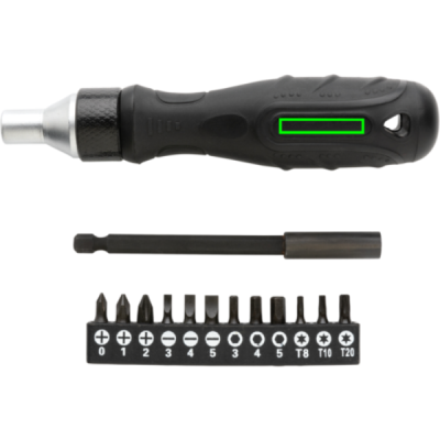 Ylellinen ruuvimeisselisetti korkealaatuisella S2 -terässeoksesta valmistetuilla varrella ja kärjillä. Settiin kuuluu eri kärkiä: PH0/PH1/PH2/SL3/SL4/SL5/HEX3/HEX4/HEX5/TX8/TX10/TX20. Helppo kiinnittää vahvan magneetin ansiosta. Tämä monitoiminen ruuvimeisseli on valmiina käyttöön silloin, kun tarvitset sitä. Pakattuna ylelliseen lahjapakkaukseen. Kärkien kovuus 60-62 HRC.