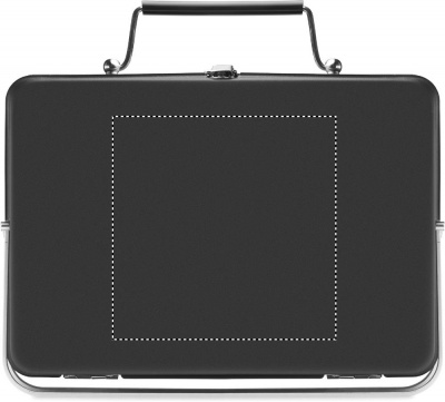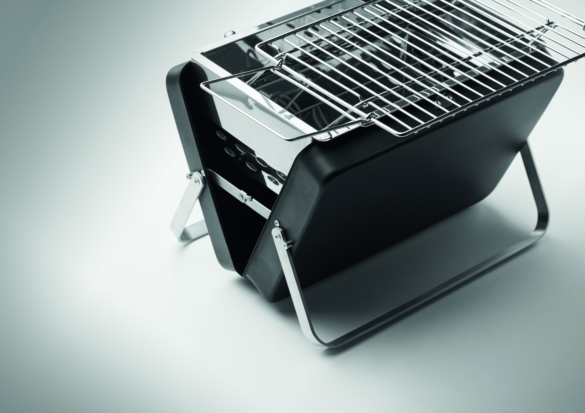 Ruostumattomasta teräksestä valmistettu mukaan otettava grilli, tuote taittuu kokoon. Tuotteen koko avattuna 27.3x18.6x10 cm ja taitettuna 27.3x18.6x5.5 cm