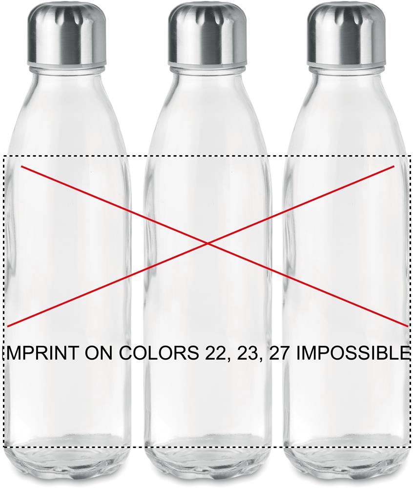 Lasinen 650 ml juomapullo, ruostumattomasta teräksestä valmistetulla korkilla. Tuote ei sovellu käytettäväksi hiilihapollisilla nesteillä, vuoto vapaa.