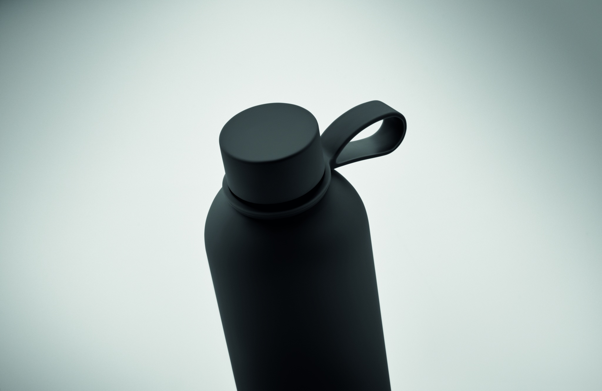 Kaksiseinäinen tyhjiöeristyspullo kierrätetystä ruostumattomasta teräksestä (90 % kierrätettyä ruostumatonta terästä ja 10 % ruostumatonta terästä), jossa on kumipinnoite ja silikonikahva. Tilavuus: 500 ml.
