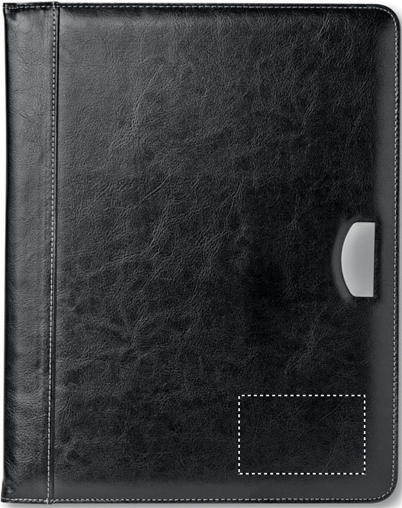 A4 PU kansio, kannessa metallilaatta kaiverrusta varten. Sisältää 20 sivuisen muistilehtiön.