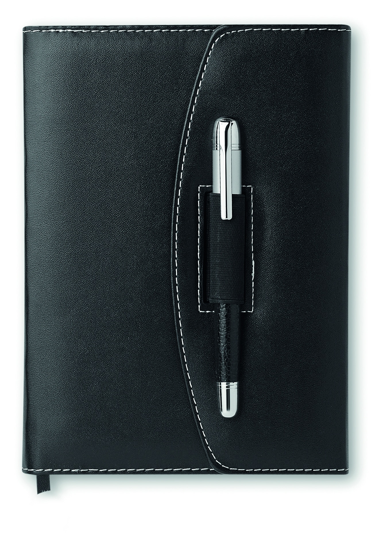 A5 PU kansio kontrastitikkauksella, sisältää 120 sivua viivattua paperia ja metallikynän mustalla musteella.
