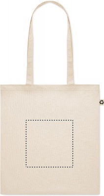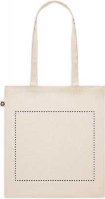 140 gr/m² kierrätetystä puuvillasta valmistettu kassi (65 % kierrätettyä puuvillaa, 35 % tavallista puuvillaa), pitkillä kahvoilla.