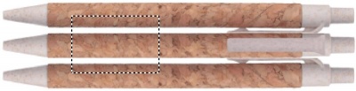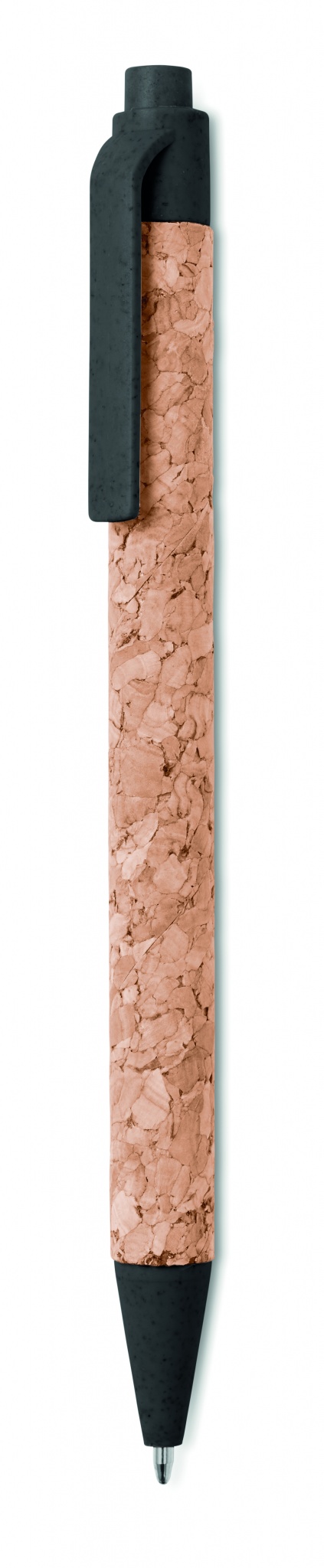 Kuulakärkikynä sinisellä musteella ja korkki rungolla, ympäristöystävällisillä vehnäolki (50%)/ABS-muovi (50%) osilla. Korkki on luonnonmateriaali, strukturaalinen laatu ja pinnan huokoisuus voi aiheuttaa eroavaisuuksia tuotteissa painatuksen jälkeen.