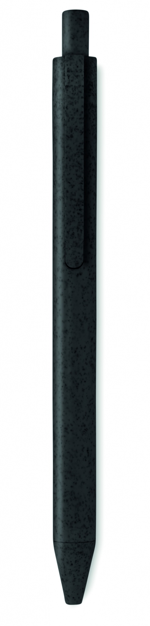 Kuulakärkikynä sinisellä musteella, tuote on valmistettu 50% vehnän oljesta ja 50% ABS.