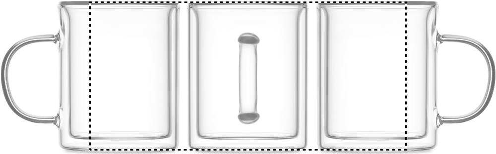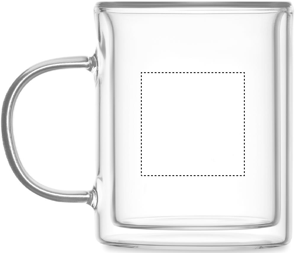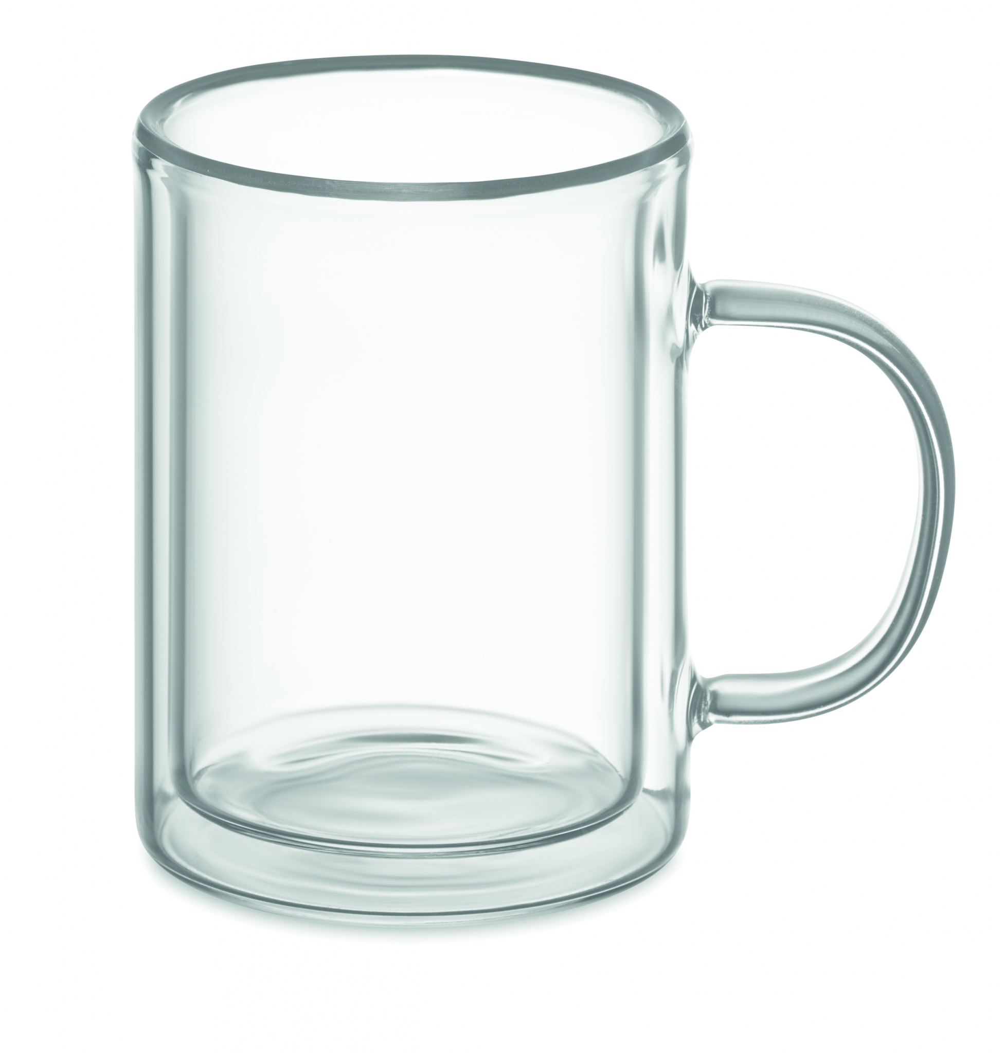 Kaksiseinäinen lasimuki, jonka tilavuus on 225 ml ja jossa on erikoispinnoite sublimaatiota varten.