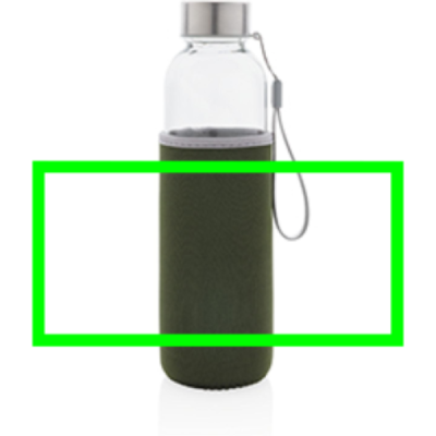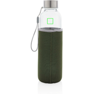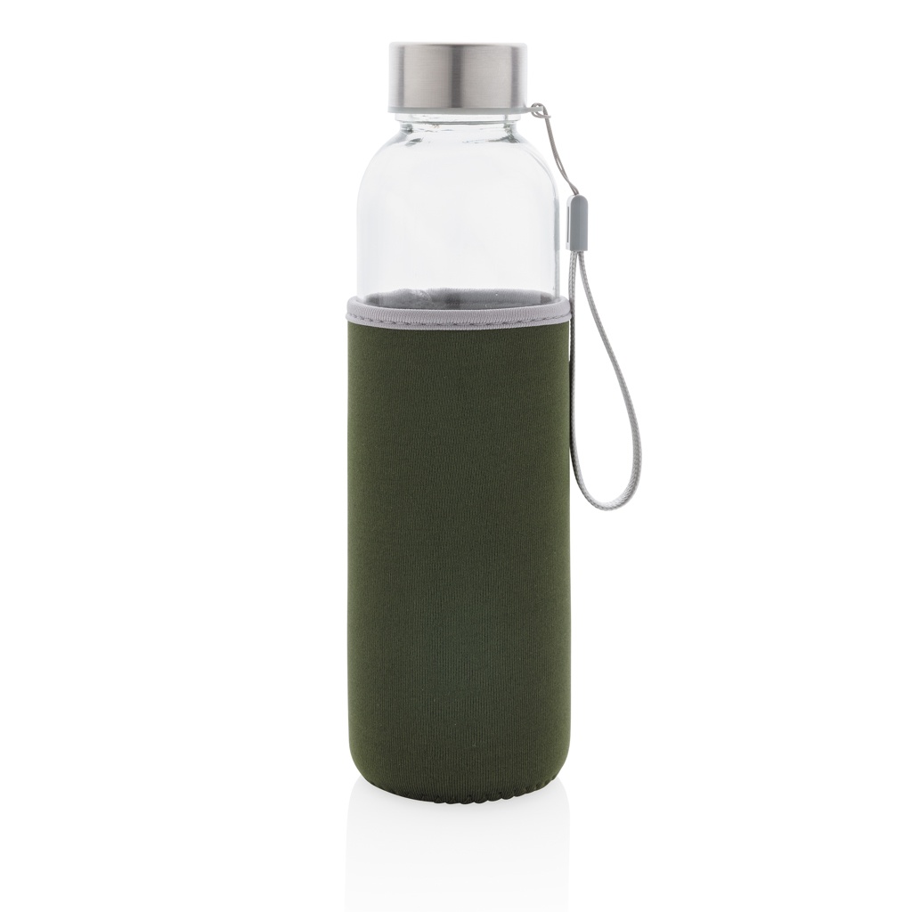 Logo trade mainoslahja ja liikelahja tuotekuva: Lasipullo neopreenivyötteellä