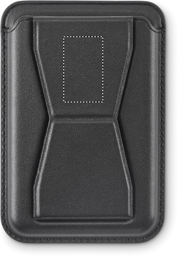 PU-nahkainen puhelinkorttiteline (kahdelle kortille), jossa telinetoiminto ja magneettinen suljin. Yhteensopiva iPhone® 12:n ja uudempien kanssa. Mukana magneettinen metallirengas muiden ei-magneettisten langattomien ladattavien puhelimien lataamiseen.