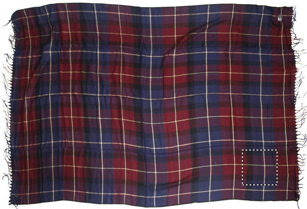 Matkapeitto kantovyöllä. Peiton materiaali 100% akryylia ja kantovyö PVC.