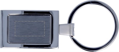 Metallinen suorakulmainen avaimenperä, yksittäispakattuna mustaan ​​lahjapakkaukseen.